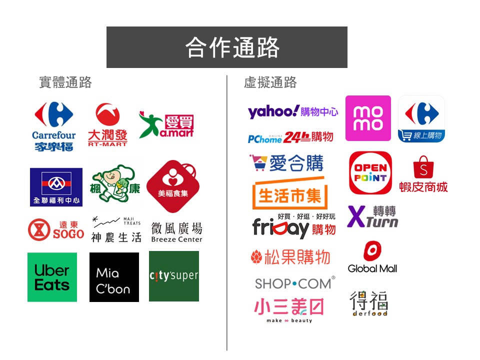 ◆2016 年起拓展至各大電商通路(Momo、蝦皮商城、PChome、Yahoo 等)