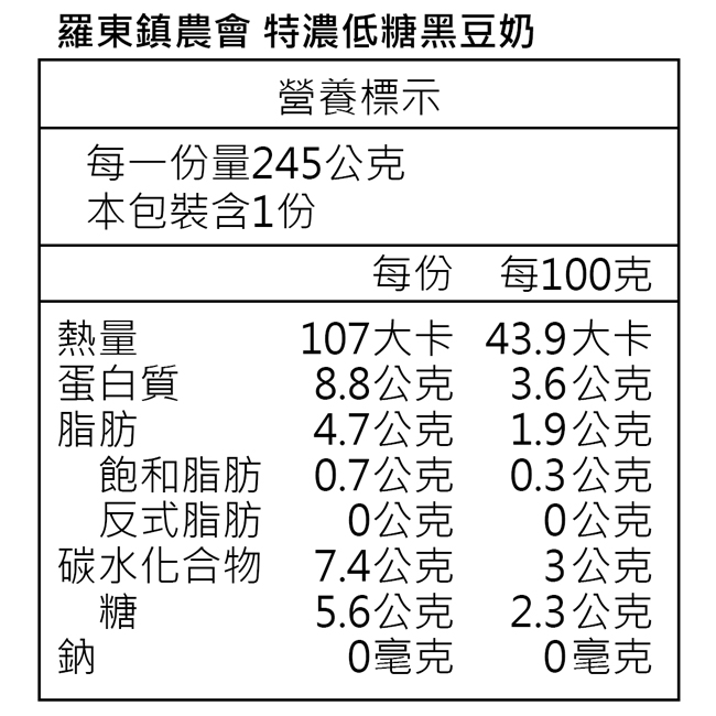 ◎品名:【羅東農會】羅董特濃低糖系列24瓶 -低糖黑豆奶/低糖豆奶(245ml/瓶)