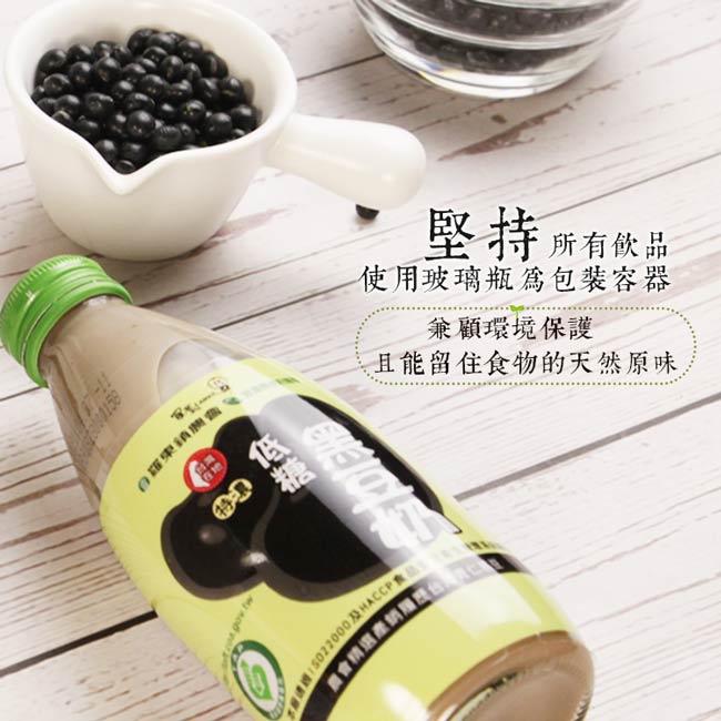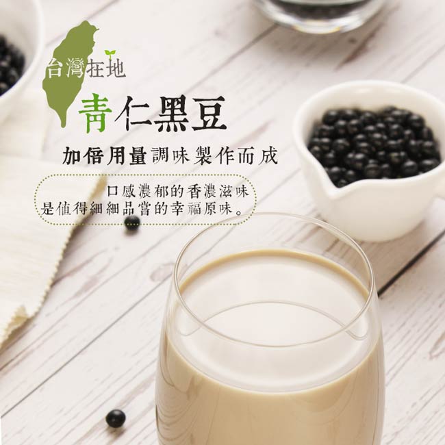 低糖黑豆奶:青仁黑豆、精製特砂、水。