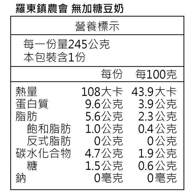 ◎商品名稱:【羅東農會】羅董特濃無加糖台灣豆奶24瓶(245ml/瓶)