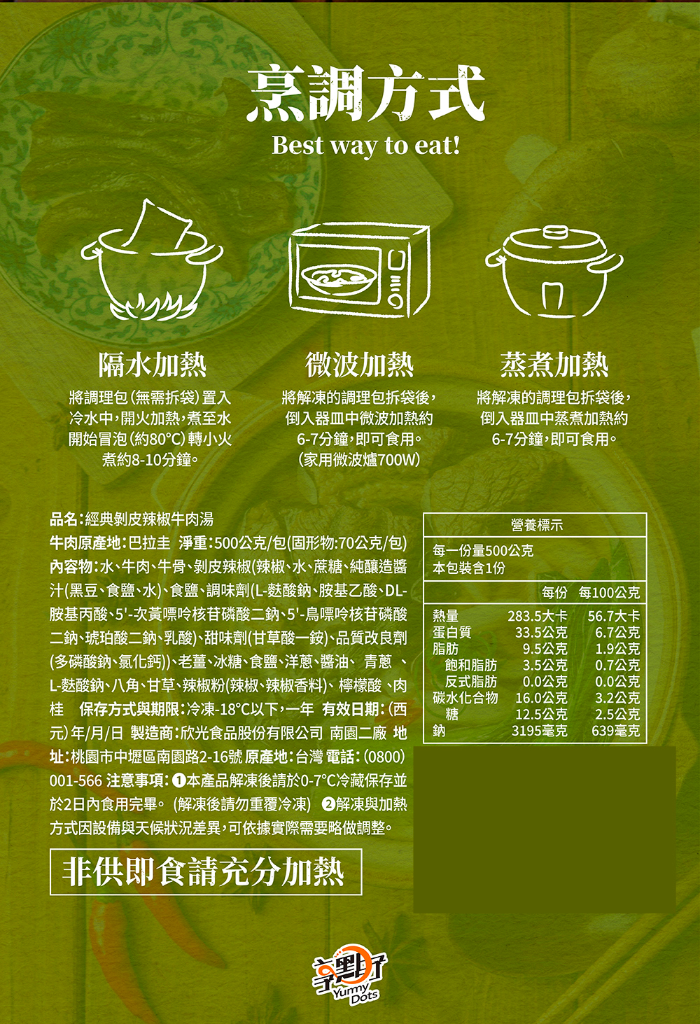 商品規格:紅燒牛肉湯 500g+-10%/包(固形物:80公克)