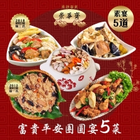 ◎品名:【崇華】富貴平安團圓宴(素食5菜組)(年菜預購)(無法指定到貨日)炒三杯 佛跳牆 獅子頭 蘋果日報第一 玉潤蓮糕