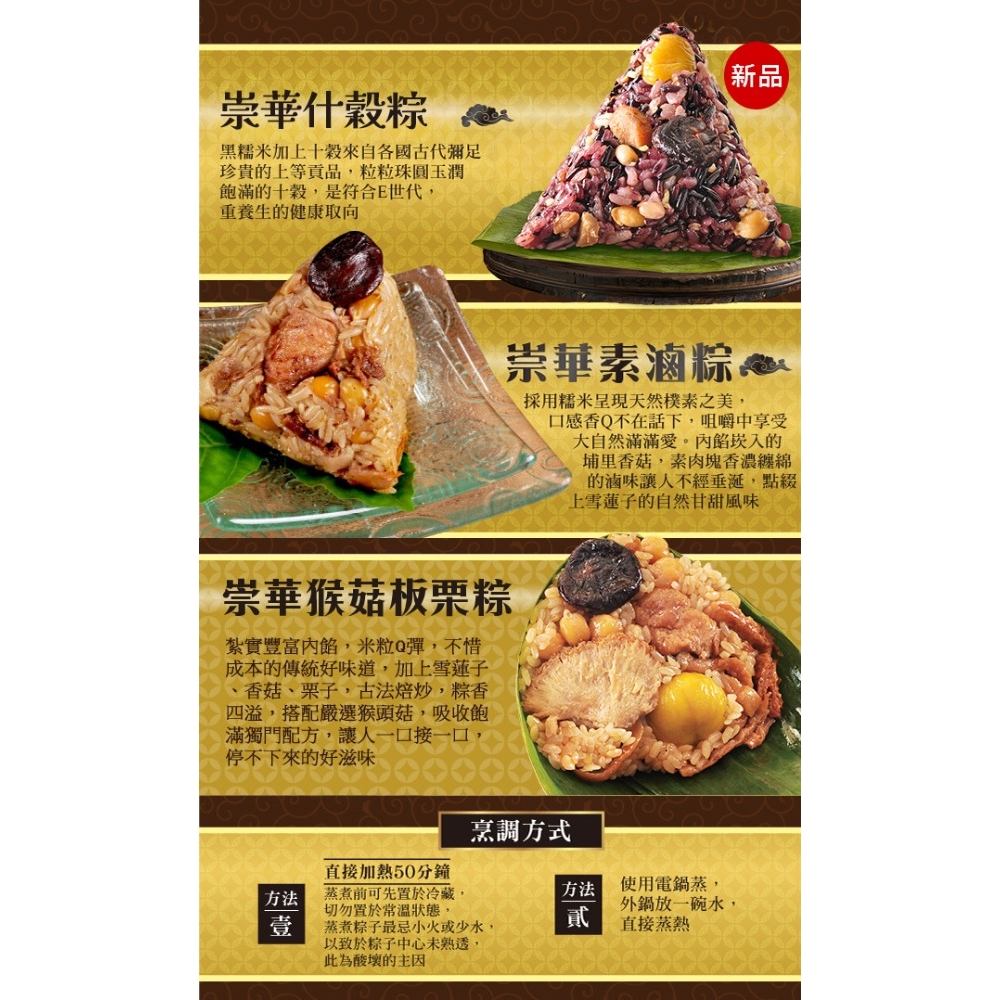 【崇華】素滷粽 6粒 (150g/粒)全素 素粽 板栗粽 養生粽 素滷 肉粽 糯米 得獎名粽 什穀 崇華