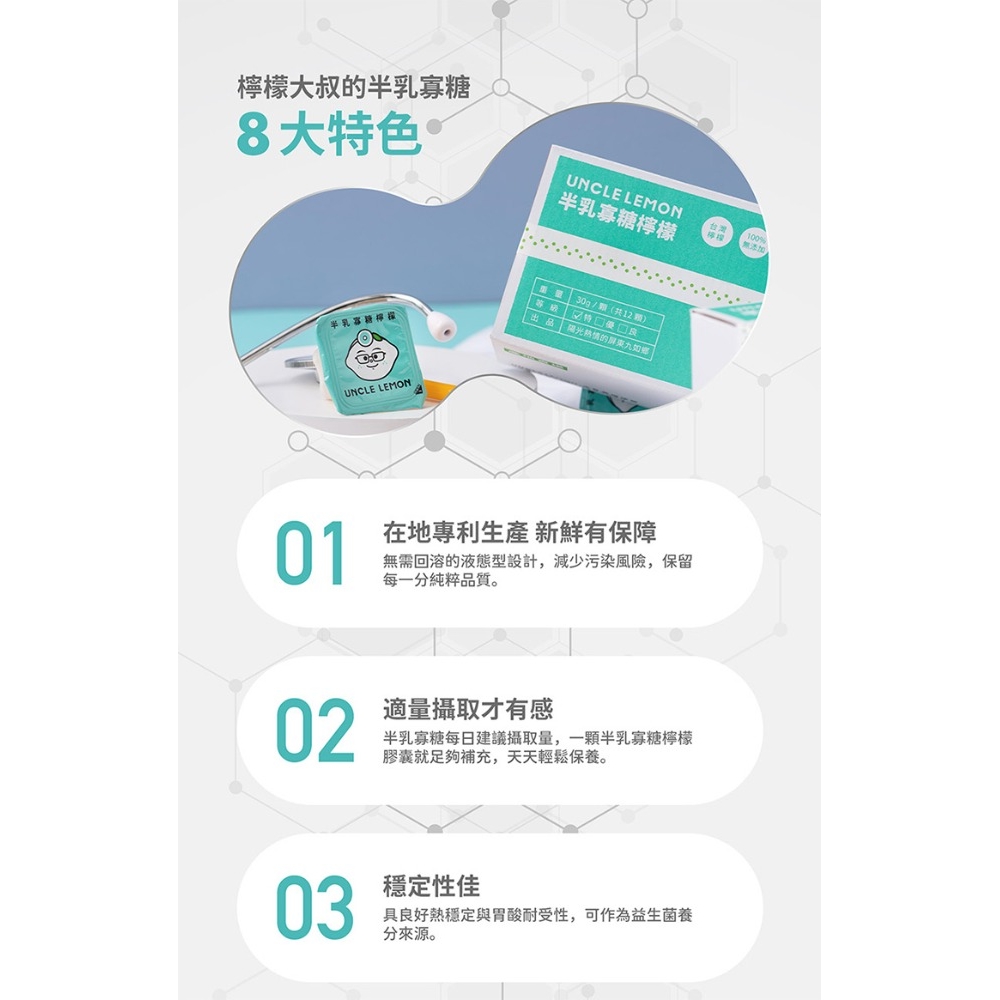 ◎品名:【檸檬大叔】半乳寡糖檸檬膠囊 (12入/盒)|添加益生元・台灣專利技術製造