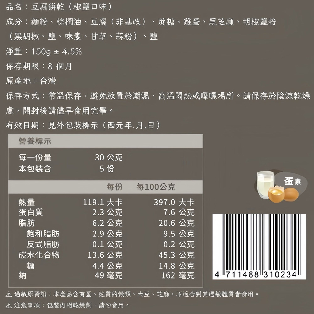 ◎品名:【明月豆腐餅】原味/椒鹽/梅粉/麻辣/海苔/芥末 豆腐餅(150g/包)豆香十足 唰嘴 板豆腐