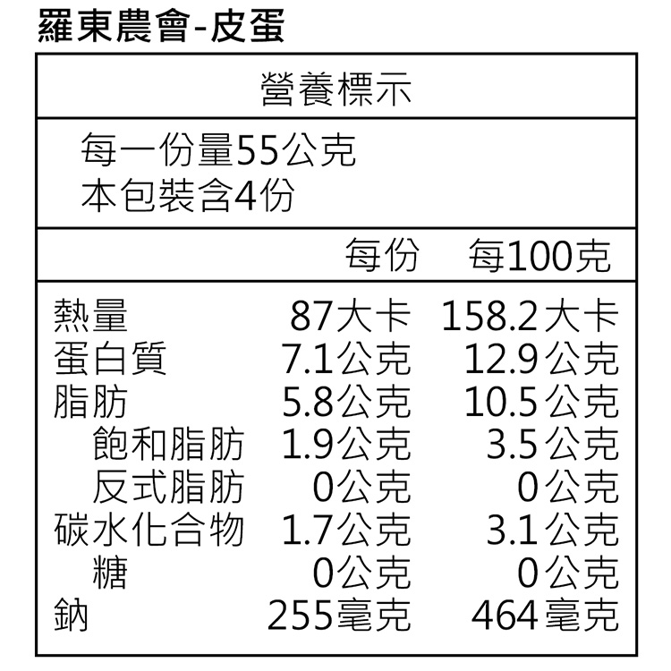 ◎品名:【羅東農會】羅董養生皮蛋4粒入(220g/盒)