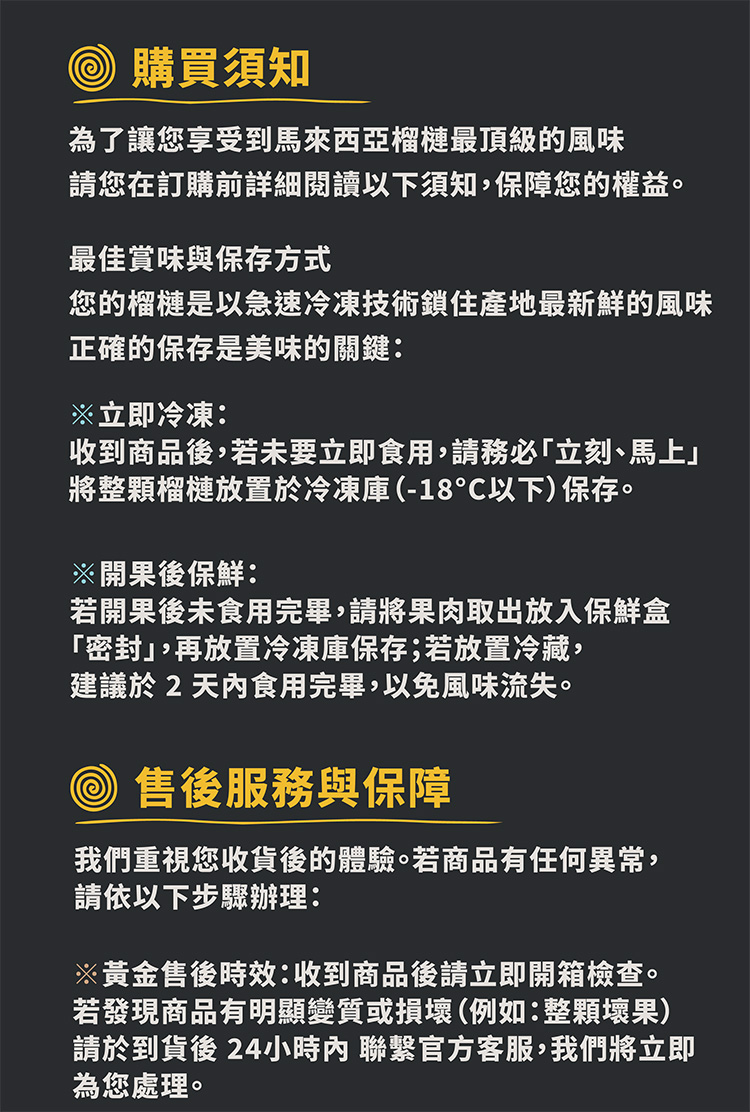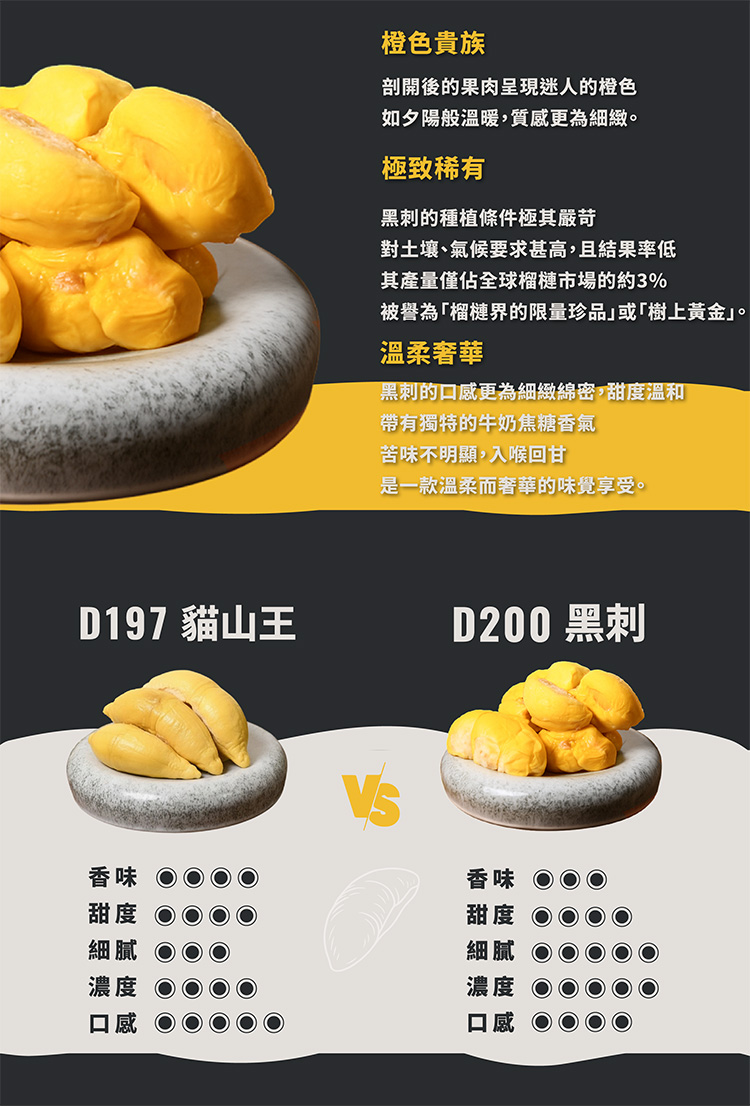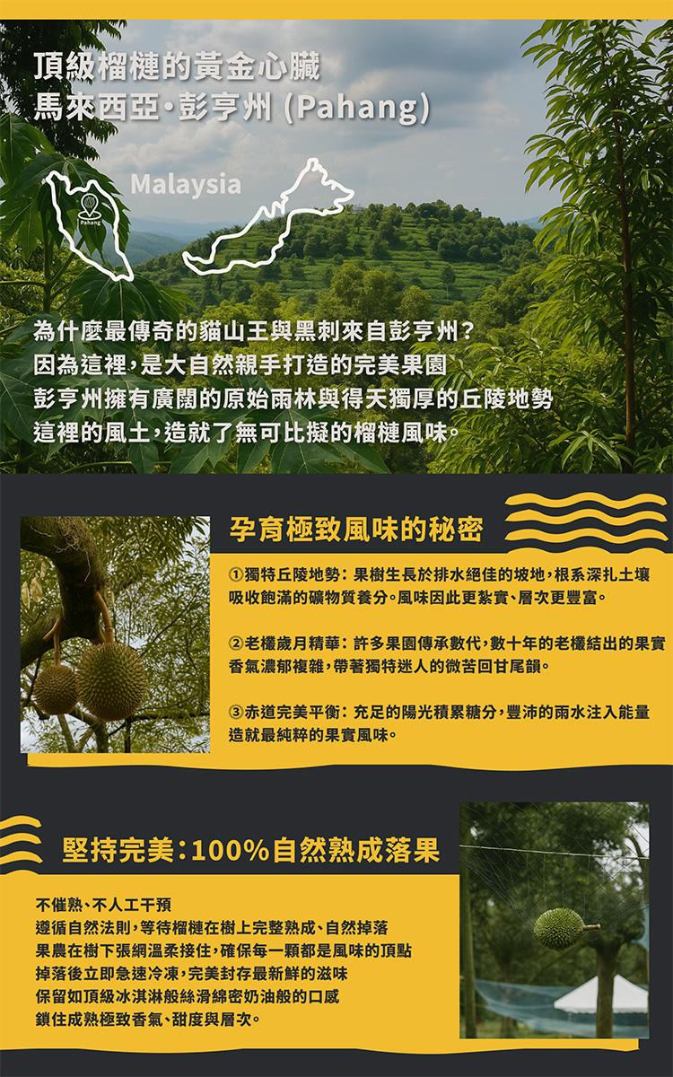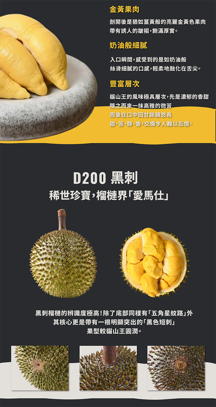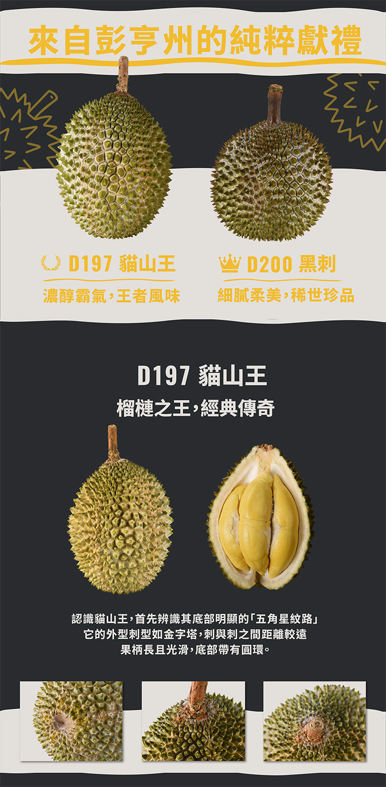 ◎品名:馬來西亞-冷凍帶殼貓山王熟果榴槤1A果1粒 (1.9kg±20%)冷凍免運 液態氮真空包裝 肉質滑順 果香濃郁 榴槤界的貴族