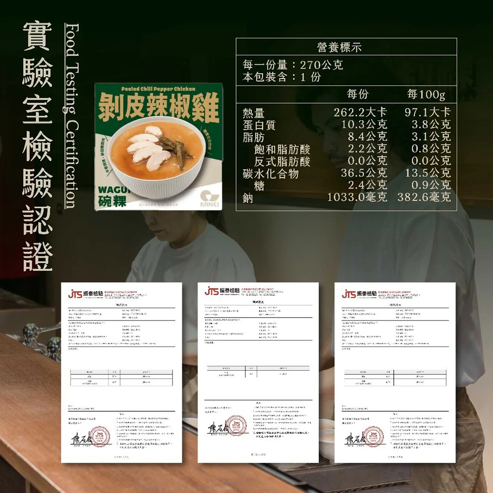 成分:水、雞肉、醬油[水、脫脂大豆(非基因改造)、食鹽、小麥、轉液化糖(蔗糖、水)、酒精、調味劑(胺基乙酸、5‘一次黃嘌呤核苷磷酸二鈉、5’一鳥嘌呤核苷磷酸二鈉)]、純在來米粉、肉圓粉(磷酸化磷酸二澱粉、辛烯基丁二酸鈉澱粉、磷酸二澱粉、樹薯澱粉、丁二酸鈉澱粉)、剝皮辣椒[醬汁(大豆、水、小麥)、青辣椒、大豆水解物、砂糖、L-麩酸鈉、DL-胺基丙酸、檸檬酸、琥珀酸二鈉、5’-次黃嘌呤核苷磷酸二鈉、5’-鳥嘌呤核苷磷酸二鈉、多磷酸鈉、乳酸鈣、甘草萃(甜味劑)]、氧化澱粉、軟質棕櫚油、大豆油、芥花油、油蔥酥、冰糖、L-麩酸鈉、香菇素蠔油[水、蔗糖轉化液糖、非基因改造黃豆(高蛋白豆片)、小麥、食鹽、黏稠劑(玉米糖膠、乙醯化己二酸二澱粉)、酵母抽出物、苯甲酸鈉(防腐劑)、香菇粉]、碘鹽、雞粉[鹽、麥芽糊精、L-麩酸鈉、糖、玉米澱粉、雞肉粉(內含迷迭香萃取物)、香料、酵母萃取物、雞油(內含迷迭香萃取物)、棕櫚油、調味劑(5\'-次黃嘌呤核苷磷酸二鈉,5\'-鳥嘌呤核苷磷酸二鈉)、白胡椒]、五香粉(小茴、肉桂、大茴香、丁香、花椒)、甘草粉(甘草、山奈)