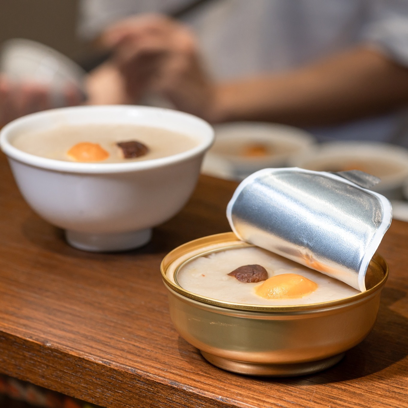 建議在開啟封膜蓋的情況下,將罐頭放置於電鍋內鍋中,外鍋加入半杯水。待按鈕跳起後,開蓋靜置5-10分鐘,讓表面水分蒸發,使其Q彈,即可享用。