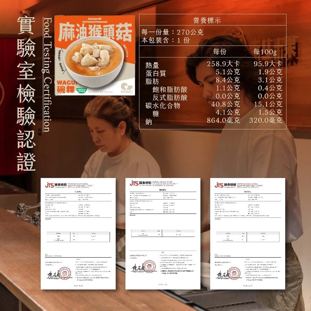 成分:水、無蛋猴頭菇、醬油[水、脫脂大豆(非基因改造)、食鹽、小麥、轉液化糖(蔗糖、水)、酒精、調味劑(胺基乙酸、5‘一次黃嘌呤核苷磷酸二鈉、5’一鳥嘌呤核苷磷酸二鈉)]、純在來米粉、肉圓粉(磷酸化磷酸二澱粉、辛烯基丁二酸鈉澱粉、磷酸二澱粉、樹薯澱粉、丁二酸鈉澱粉)、氧化澱粉、麻油薑泥[薑、麻油、芥花油、砂糖、鹽、L-麩酸鈉、香菇粉(食鹽、L-麩酸鈉、香菇、砂糖、麥芽糊精、大豆水解蛋白、醬油、葡萄糖、胺基乙酸、5'-次黃嘌呤核苷磷酸二鈉、5'-鳥嘌呤核苷磷酸二鈉、高麗菜、琥珀酸二鈉、酵母抽出物、黑胡椒、氧化澱粉、芥花油、糊精、葵花籽油、大茴、琥珀酸、碳酸鉀、檸檬酸)、酵母抽出物、義大利綜合香料(奧勒岡葉、羅勒葉、迷迭香葉、蒜粒、辣椒、馬郁蘭葉、洋香菜葉)、五香粉(八角、肉桂、花椒、丁香、陳皮)]、軟質棕櫚油、大豆油、芥花油、純黑麻油、冰糖、L-麩酸鈉、碘鹽、五香粉(小茴、肉桂、大茴香、丁香、花椒)、甘草粉(甘草、山奈)