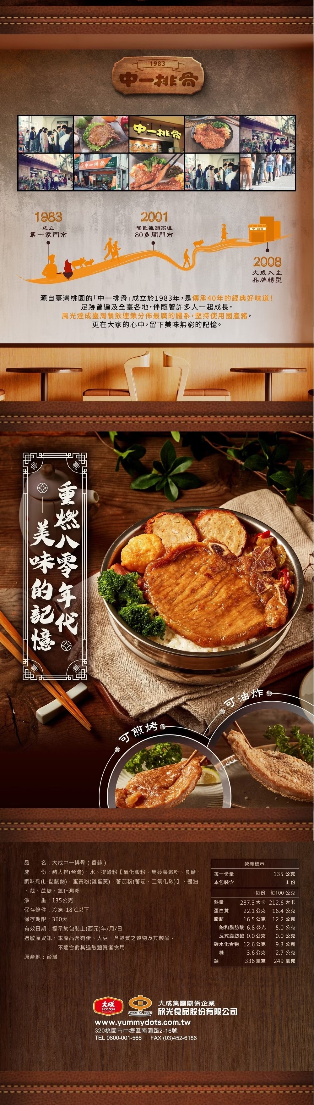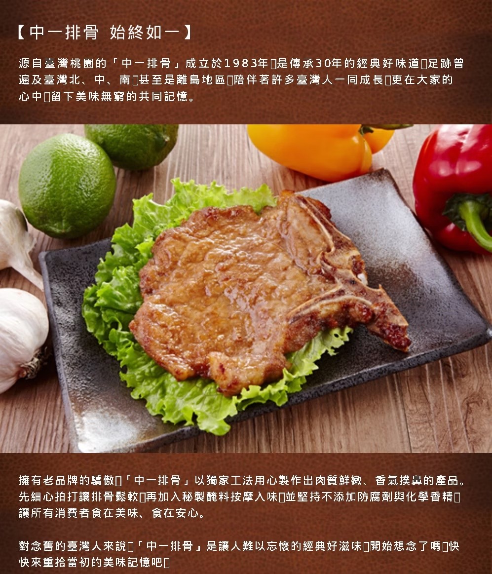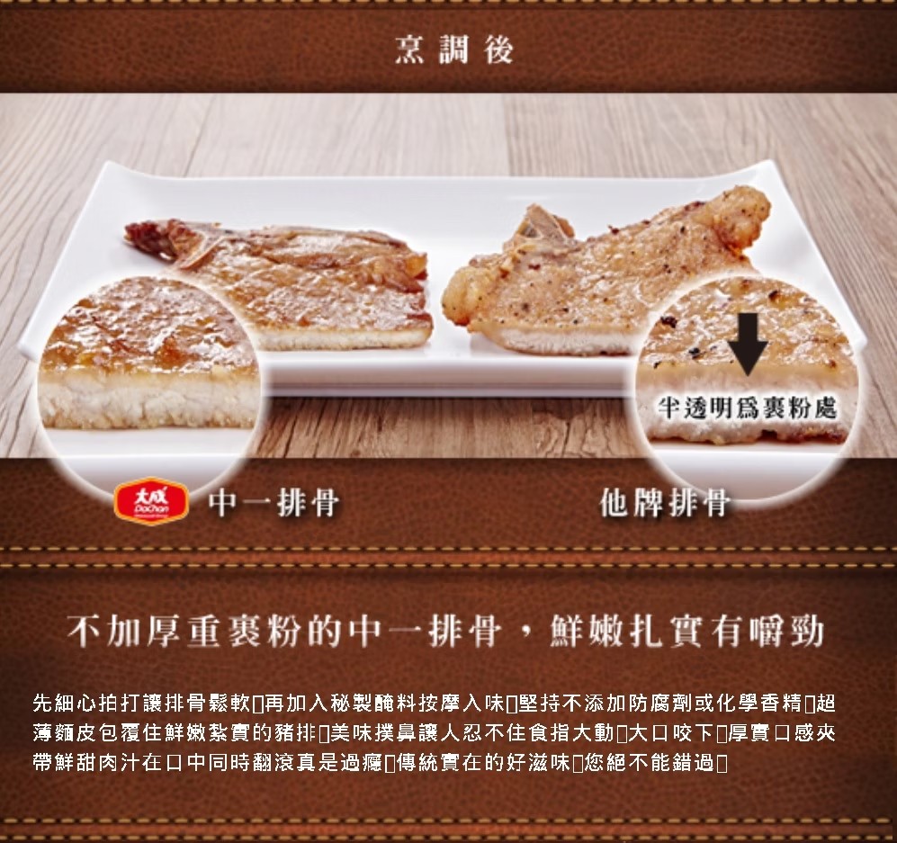 ◎品名:【大成食品】中一排骨 (135g/片)(單片裝) 香蒜排骨