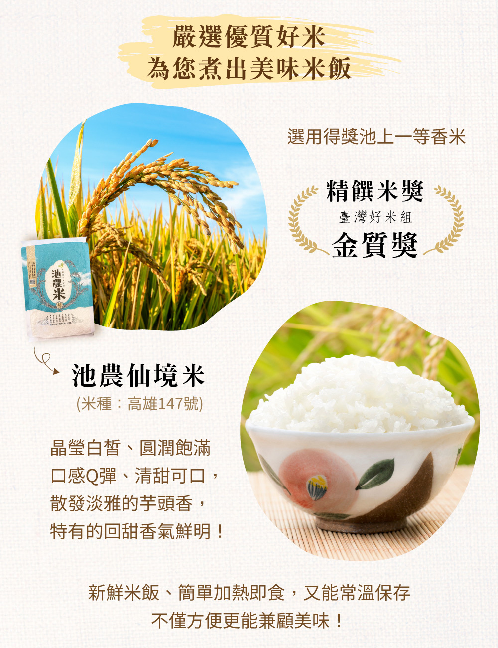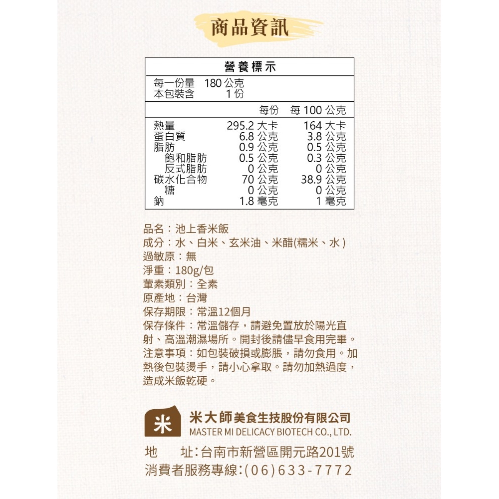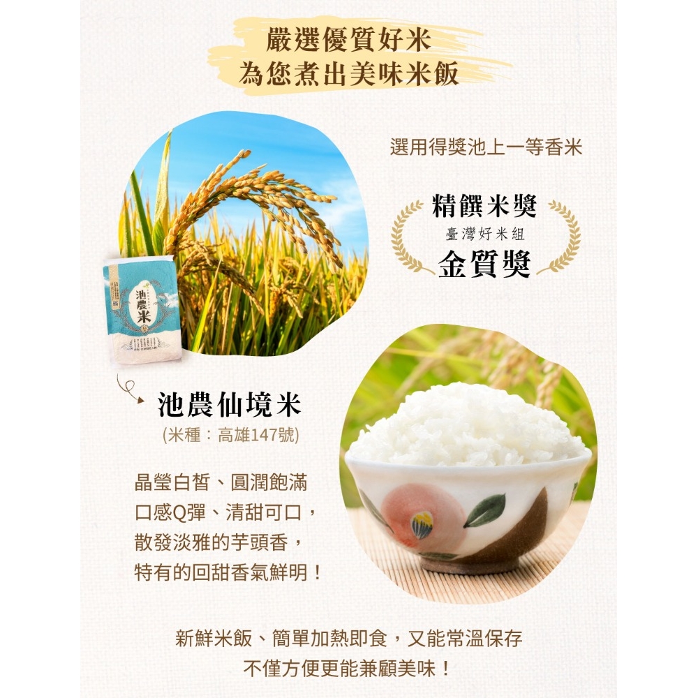 ◎品名:【米大師】池上香米飯 180g/包 (池上鄉農會|微波白飯|十穀飯|即食飯|常溫|調理|非乾燥米|方便食品|池農仙境米)