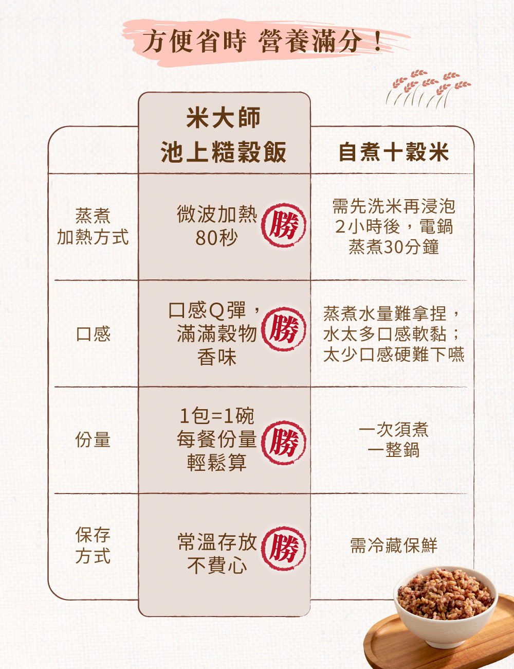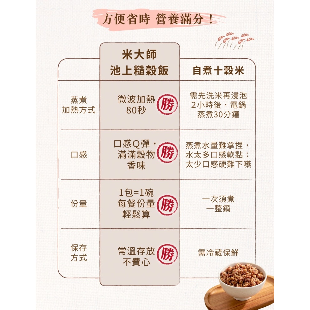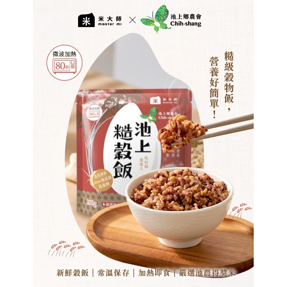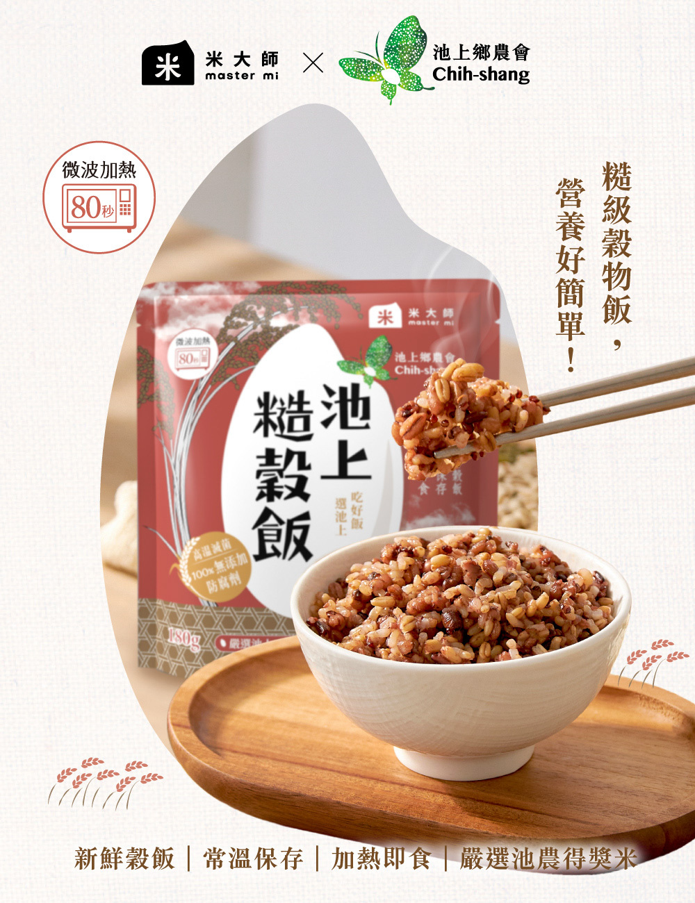 ◎品名:【米大師】池上糙穀飯 180g/包 (池上鄉農會|微波白飯|十穀飯|即食飯|常溫|調理|非乾燥米|方便食品)池農仙境米
