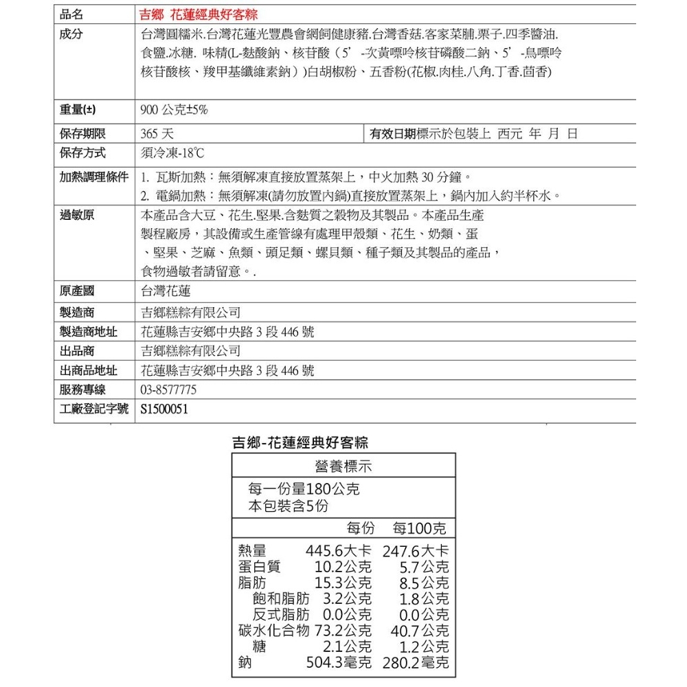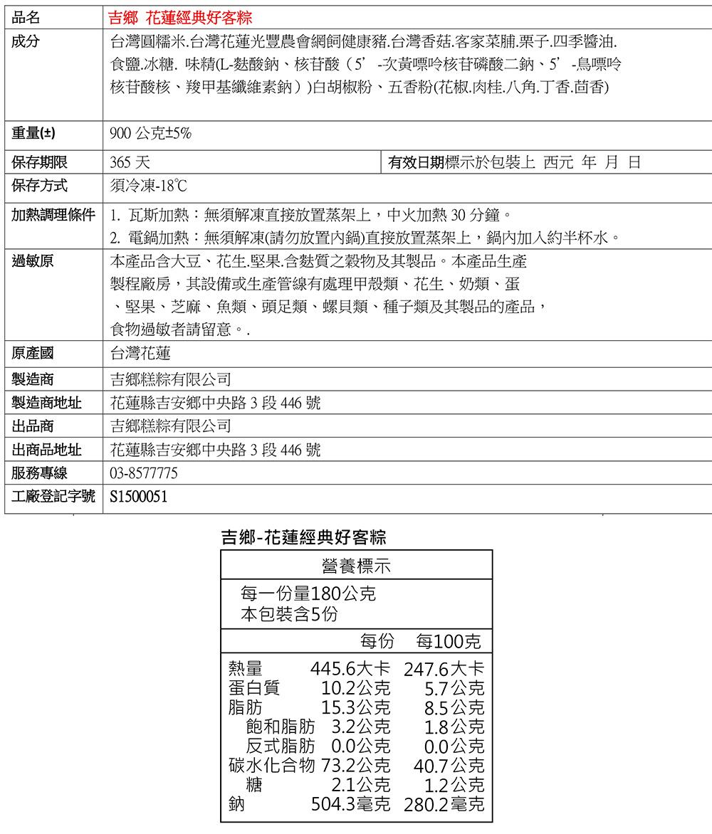 ◎品名:【吉鄉】花蓮經典好客粽 5粒(180±5%/粒)產銷履歷圓糥米 客家菜脯 台灣香菇 雪蓮子 蘋果日報第三名 肉粽 得獎