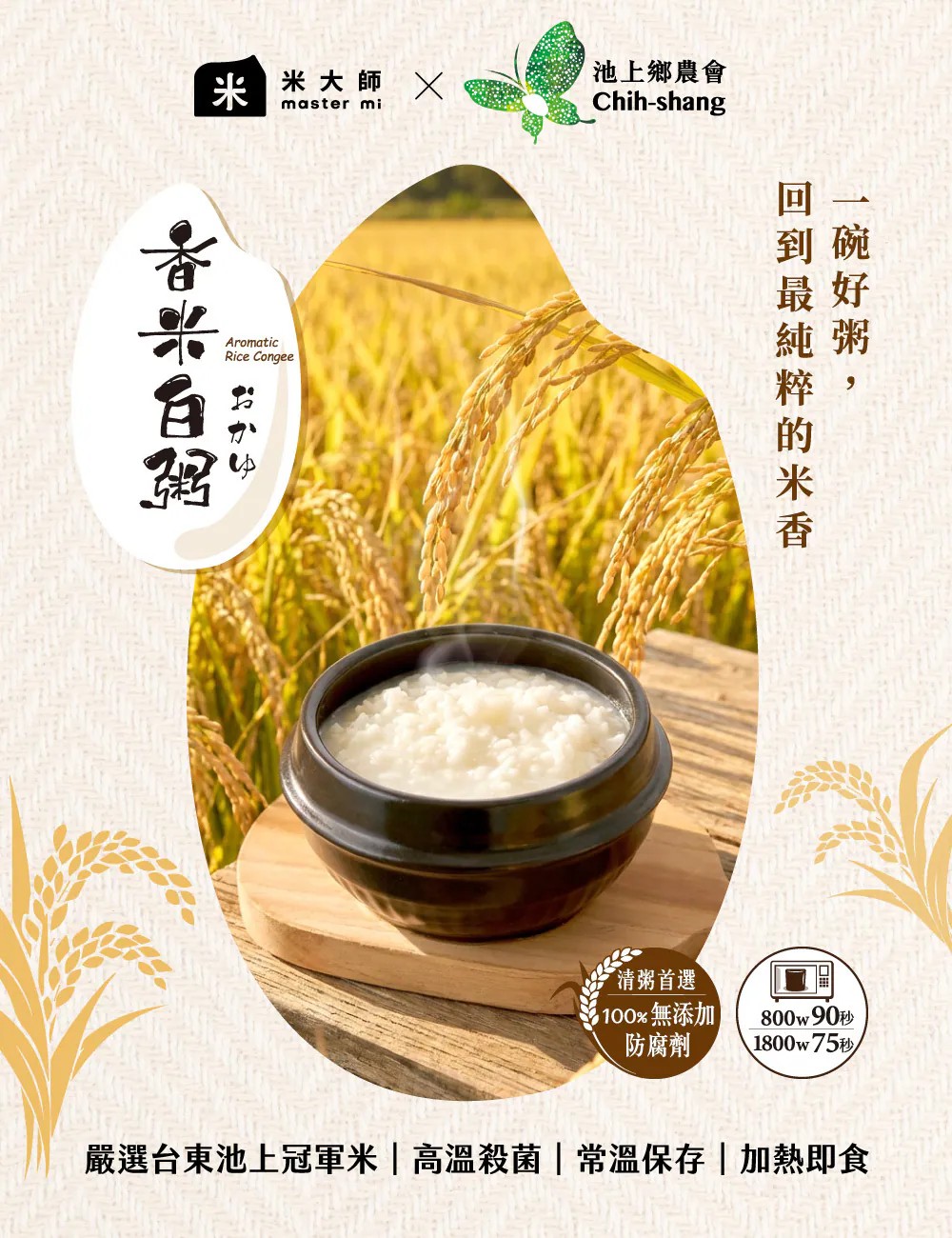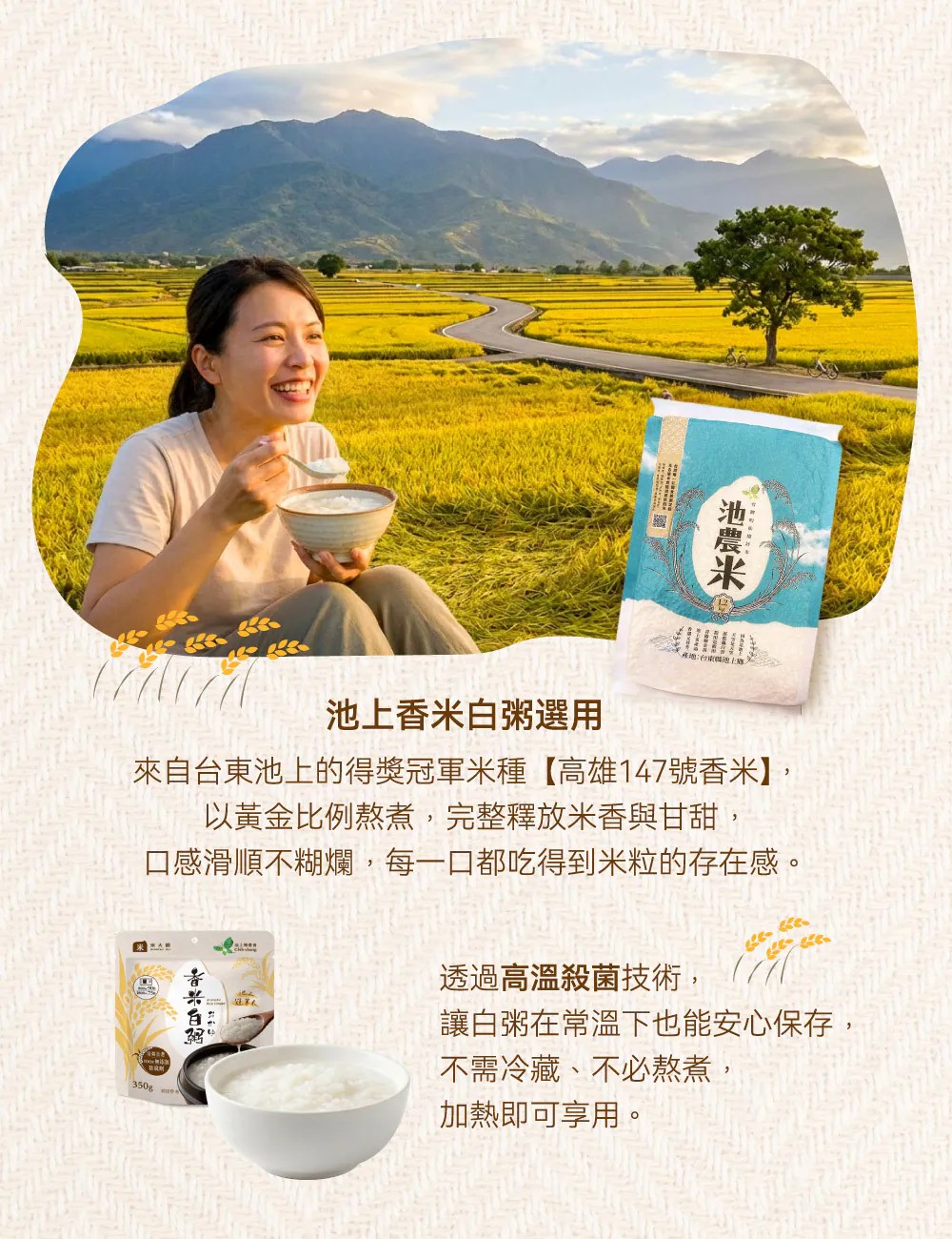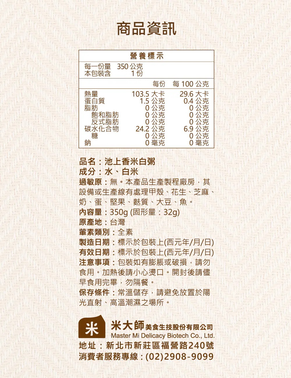 ◎品名:【米大師】常溫粥-池上香米白粥(350g/包)常溫 白粥 清粥 白米粥 非乾燥米 非冷凍飯 即食 登山露營 即食粥