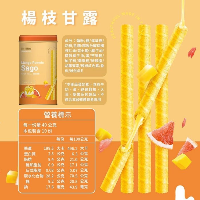 ◎品名:【黑師傅】楊枝甘露捲心酥(400g/罐)捲心酥 芒果 葡萄柚 楊枝甘露